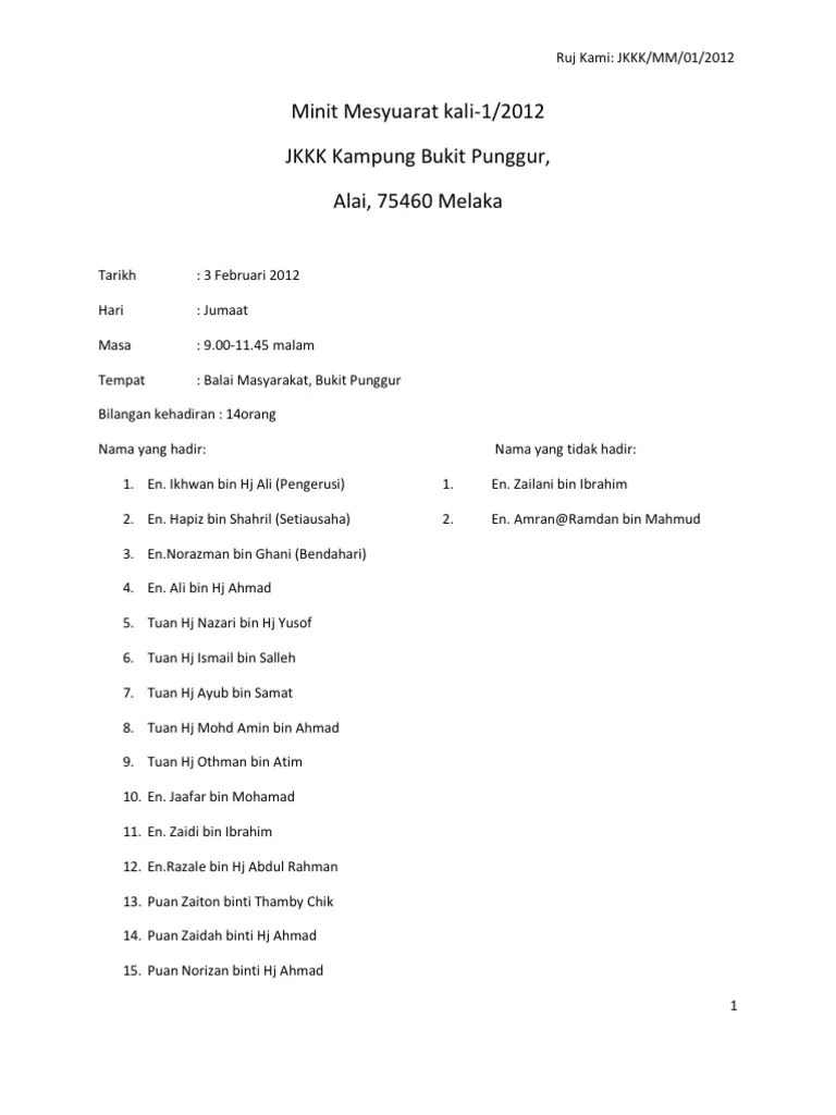 Sgo juga ingin berkongsikan tips dan panduan membuat minit mesyuarat secara ringkas dan mudah seperti berikut. 2 pengesahan minit mesyuarat 2.1 cadangan : . 28 disember 2015 masa : Mempunyai kepakaran dan pengalaman dalam. Ini kali pertama anda ditugaskan untuk mencatat minit mesyuarat?
